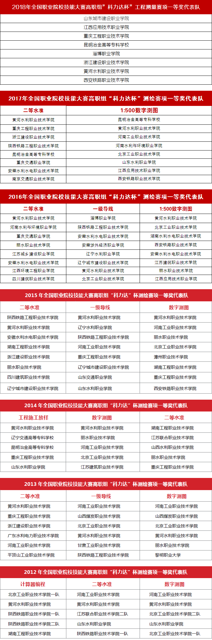 全國職業(yè)技能大賽由31個部委主辦,包括15個大類,分為98個競賽項目,其中全國職業(yè)院校技能大賽高職組測繪競賽(以下簡稱“大賽”)作為其中一個分項,是測繪地理信息職業(yè)教育領域規(guī)格最高、水平最高、參與范圍最廣的一項賽事。自2012年以來,科力達已經連續(xù)四年總冠名并贊助大賽賽項,今年是第五個年頭。